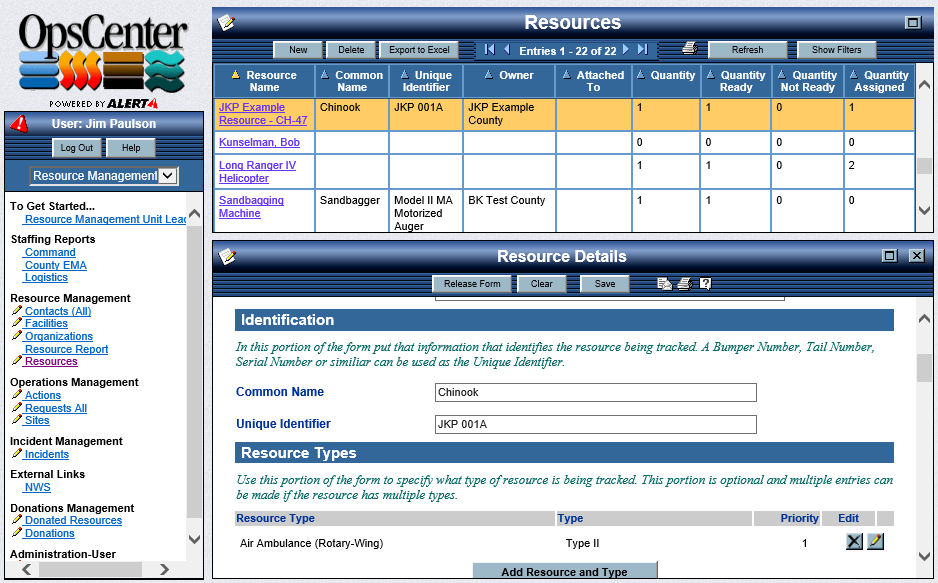 OpsCenter includes Resource Management functionality that supports both the National Incident Management System (NIMS) model and the military model for managing resources. If a different scheme is already in use by an organization, it can be reflected through configuration of the system by a non-technical person.